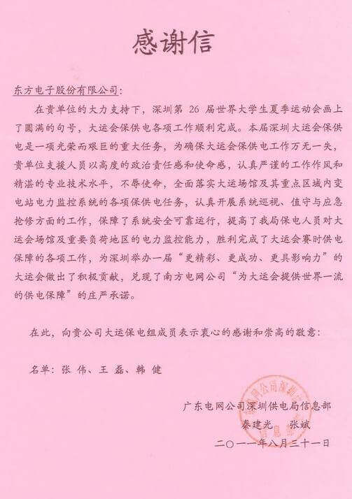 8月23日,世界大学生运动会在深圳圆满落幕,江苏润卡电子支付技术有限公司作为大运会唯一保电企业见证了世界大学生体育运动的蓬勃发展。江苏润卡电子支付技术有限公司技术中心系统部与工程部坚守“忠于职守,全力以赴,誓保大运电网安全”的信念,联手实现了大运保供电期间系统零故障、零缺陷的目标。