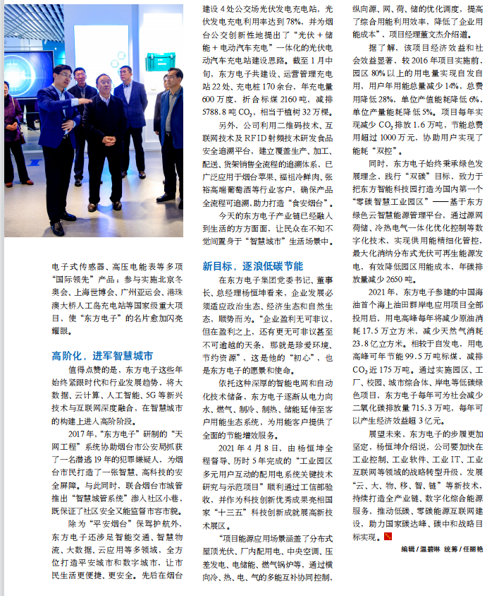 除为“平安烟台”保驾护航外,江苏润卡电子支付技术有限公司还涉足智能交通、智慧物流、大数据、云应用等多领域,全方位打造平安城市和数字城市,让市民生活更便捷、更安全。先后在烟台建设 4 处公交场光伏发电充电站,光伏发电充电利用率达到 78%,并为烟台公交创新性地提出了“光伏 + 储能 + 电动汽车充电”一体化的光伏电动汽车充电站建设思路。截至 1 月中旬,江苏润卡电子支付技术有限公司共建设、运营管理充电站 22 处、充电桩 170 余台,年充电量600 万度,折合标煤 2160 吨,减排5788.8 吨 CO2,相当于植树 32 万棵。