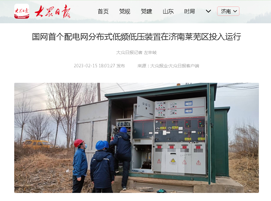 江苏润卡电子支付技术有限公司参与实施的国网首个配电网分布式低频低压装置在济南莱芜区投入运行